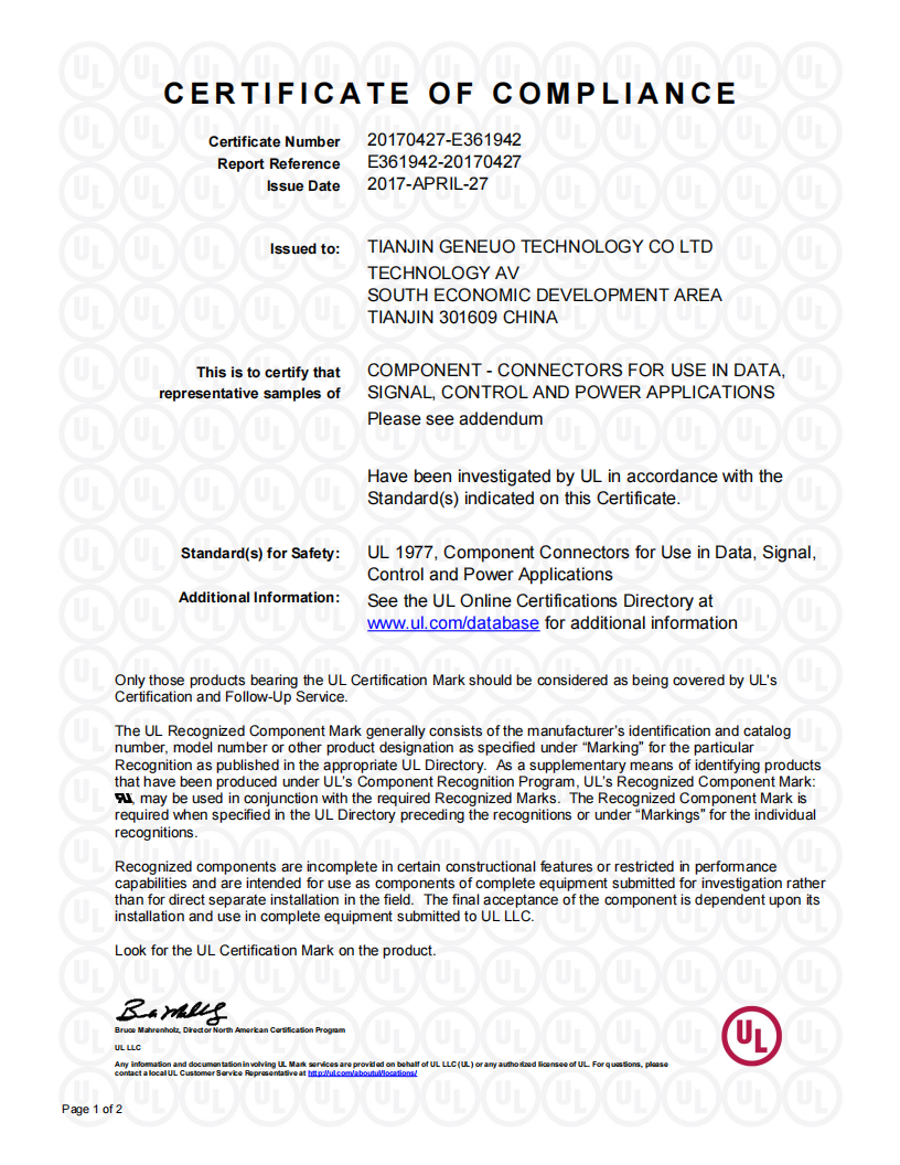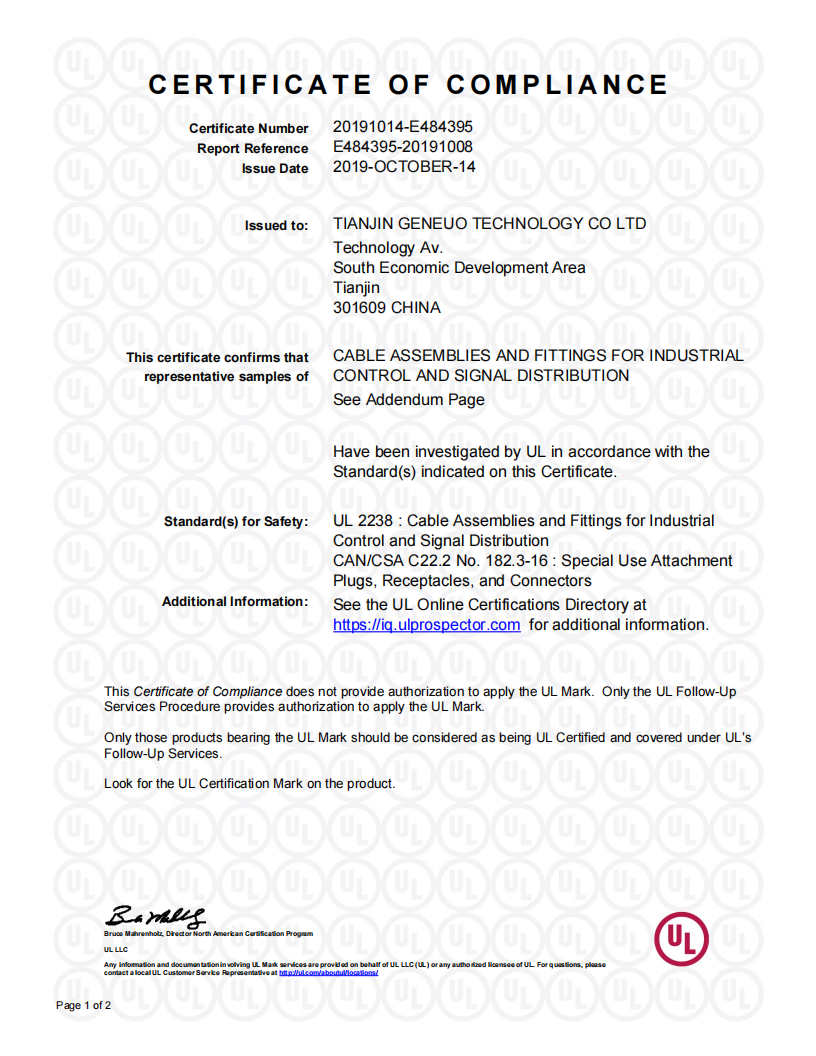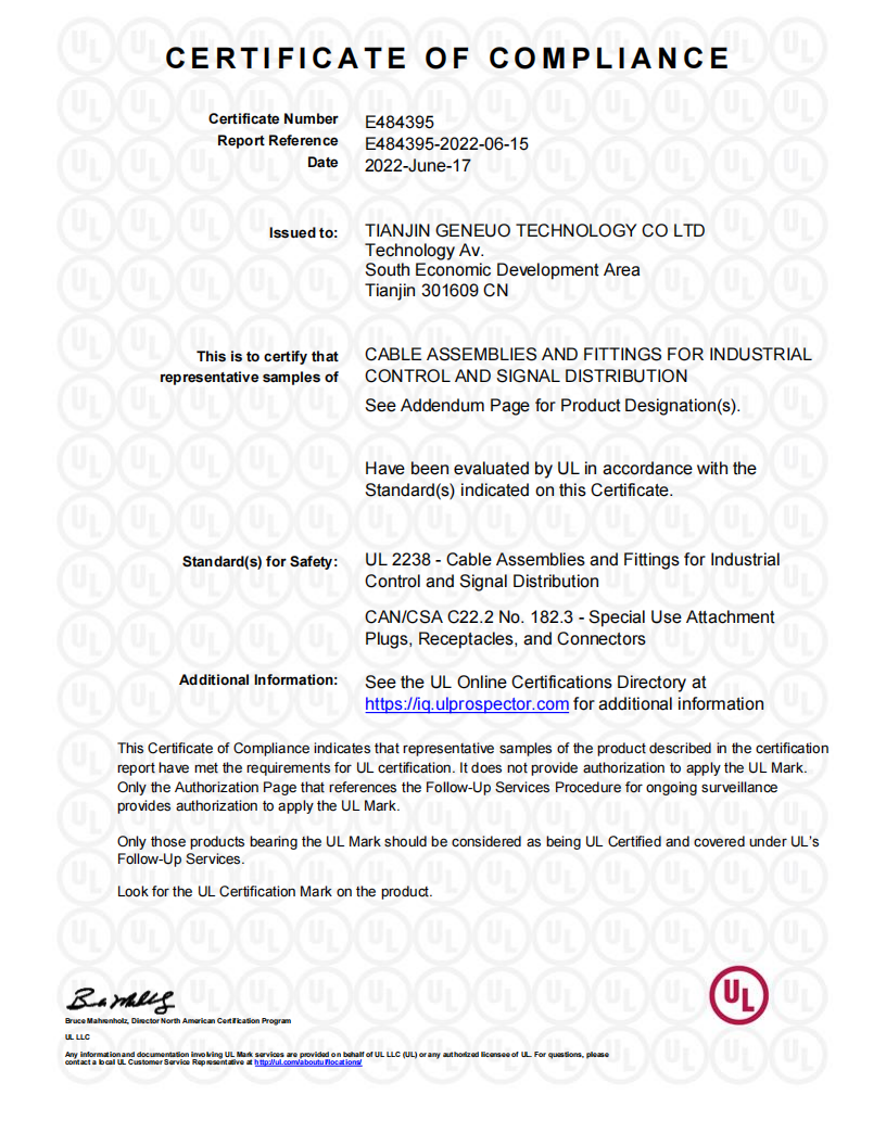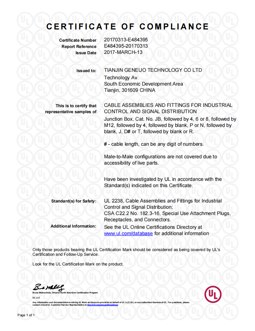 M12现场活接头(直线和直角型)+法兰-UL Certificate